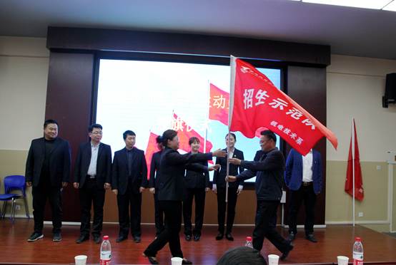 会上,招办副主任易海英汇报了学院2019年招生工作实施方案,并解读了2019年招生管理办法;机电技术系主任张琳娜、现代服务系教师常薇分别代表所负责的招生区域进行表态发言,分享了招生过程中的经验与感悟。学院领导分别为三个招生片区负责人进行授旗。分管招生工作的冯小平副院长对2019年招生工作提出明确要求:一是全体教职工要从思想上高度重视招生工作;二是要分区域组织实施,各区域要制定切实可行的招生方案,强化责任制考核;三是要创新招生宣传模式,多途径开辟招生渠道,充分利用线上线下开发新的生源地和生源学校;四是招生过程中要发扬主人翁意识,主动了解家长和学生的实际需求,及时做好咨询服务工作。