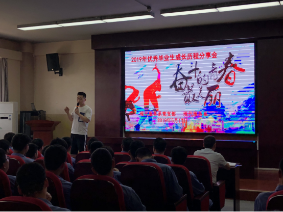 根据学院2019年校园开放周总体安排,为展示我院优秀毕业生风采,激励学生努力成才,现代服务系于2019年5月17日下午,召开2019年优秀毕业学生成长经历分享会。邀请汽修专业毕业生刘开,财务管理专业毕业生刘梦竹、李瑞霄,与20届汽修、财管和广告专业的学生共二百余人共同分享他们的学习成长经历。