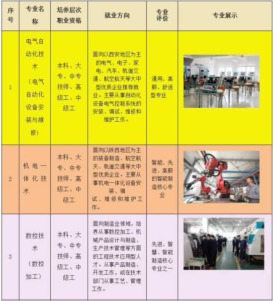 机电技术系是学院历史最悠久、规模最大、办学特色鲜明、实力雄厚的教学系之一,是面向装备制造业培养高技能人才的重点建设系部,开设有以机电类为主体方向的专业群,重点专业有数控技术、数字化设计与制造、模具设计与制造、焊接技术与自动化、电气自动化技术、机电一体化技术、楼宇自动控制设备安装与维护、工业网络技术等,其中数控技术、电气自动化技术、模具设计与制造等专业均评为陕西省名牌专业。是世界技能大赛“机电一体化”、“电子技术”陕西省选拔训练基地,系部拥有一支兼备“陕西省技术能手”、“陕西省首席技师”、“中国大能手3D打印全国总冠军”、“陕西省教学能手”、“陕西省技术状元”等荣誉称号的双师型专职教师队伍,其中本科及硕士以上学历占90%,中高级职称占68%,具有技师及以上职业资格者占57%,实训设备共计3000多台/套,先后培养出获得“全国五一劳动奖章获”、“陕西省劳动模范”、“陕西省技术能手”、“西安市劳动模范”、“西安工匠”等荣誉称号的众多优秀毕业生。