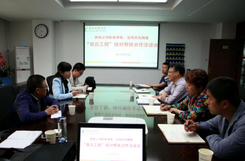 1.2017年9月25日下午,宝鸡市凤翔县贾副县长、教体局刘书记、扶贫办严主任等一行5人,来我院开展“双百工程”结对帮扶合作洽谈会。学校党委副书记、副院长杨广明、副院长冯小平及部分职能部门负责人加了合作洽谈座谈会,达成对口帮扶合作意向。