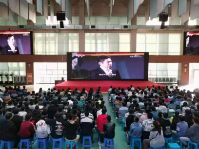 活动分为:观看西迁精神宣讲片、诗朗诵、师生齐唱三个环节。