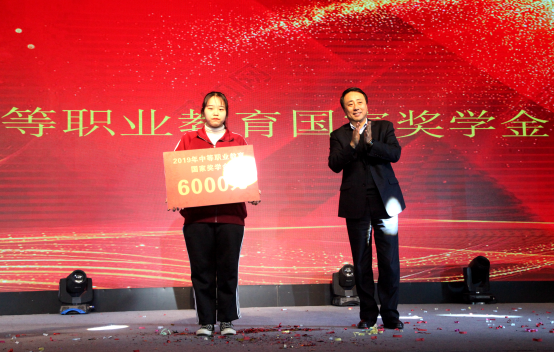晚会现场,学院还对获得2019年中等职业教育国家奖学金的宋蕊洁同学和在2019年企业实习过程中表现优异的45名学生进行了表彰奖励。
