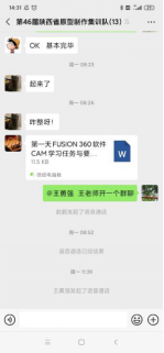 “原型制作”项目,教练充分利用加工仿真软件,每天安排加工仿真工艺的编制,并指定时间由选手们在微信群中互相交流,最后由教练进行总结。