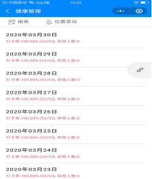 督促学生每日打卡报体温。自疫情爆发,全体学工系统的教职工就进入了工作模式,利用工作群采集学生体温,及时将全校学生体温汇总上报防疫指挥办,做到不遗漏一名学生。3月,学院又引进“我在校园”智慧平台,要求全体在校生每日进行疫情动态打卡。班主任老师及时向学生普及防控知识,进行防疫排查,做到了对学生疫情“一日一报”,同时重点关注湖北籍学生动态。工作虽然繁琐,但是老师们都认真对待,没有任何怨言,用师者的柔情默默守护每个学生的平安。
