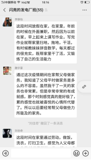 号召学生结合自身情况承担家务活动。为引导学生德智体美劳全面发展,树立正确的劳动观念,居家防疫期间为家庭奉献,弘扬社会美德,增强学生热爱劳动、有担当的思想情感。学生管理服务中心组织学生在疫情特殊时期开展“网课与家务兼顾,我是家庭好成员”网络特别主题班会活动。各班在组织学生召开班会前,做了充分的准备工作,提前要求学生积极承担部分家务劳动。学生们根据自身家庭实际情况,分别承担了农活、饲养牲畜、打扫卫生、做饭、带孩子等家务活动。各班班主任在规定时间内自选召集班会的时间,班会中请学生畅谈在居家期间承担的做家务的感受。通过家务劳动这一形式,帮助学生认识到劳动的重要性,以及作为即将走向社会的青年人应有的担当与责任。