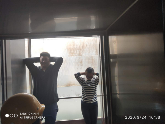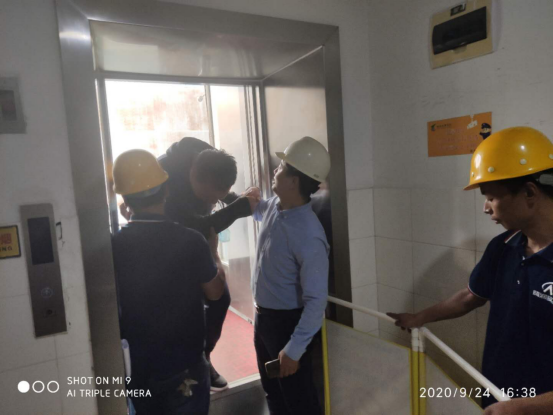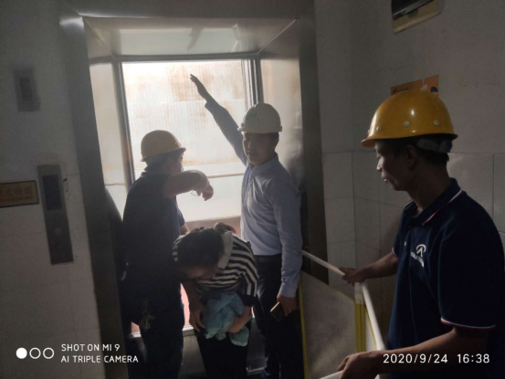 轿厢门打开,两位老师应急动作规范