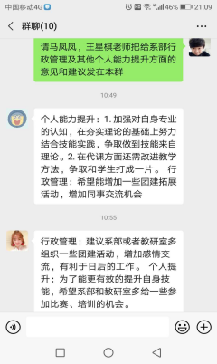 在述职答辩过程中,根据答辩安排及要求,全体教师高度重视,充分准备,采用现场答辩和线上视频答辩的形式,各位教师从个人能力提升和对系部行政管理的意见和建议两方面进行了阐述,提出建设性的意见。答辩小组成员认真记录,及时沟通,商谈注意事项及改进措施。严肃的提问、幽默的解答、积极的讨论,使得此次述职答辩张弛有度、有序开展。
