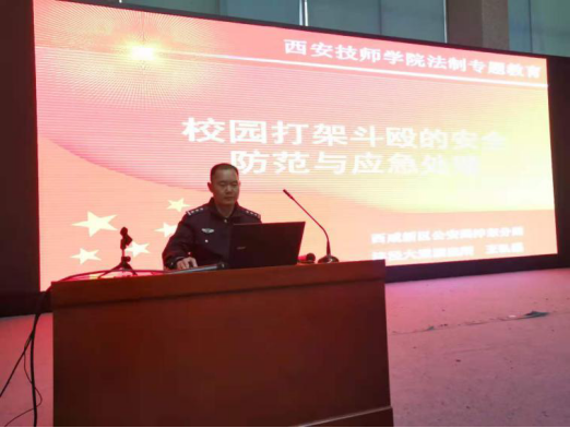 为增强学生安全防范意识和守法意识,提高学生法纪观念以及对不安全事故的预防、应急处理能力和自我保护能力。2020年11月27日,西安技师学院学生管理服务中心邀请西咸新区沣泾大道派出所王警官进行2020年学生法制安全教育讲座,学院600余名师生参加了本次讲座。