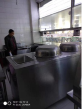 进了操作间,我们看到每一操作间里都有餐厅工作人员在忙碌地擦洗着工作台,案板、炒锅、烤箱等。学院负责餐厅管理工作的高常喜老师告诉我们,不论是哪家档口,如果达不到学院所要求的标准,是绝不允许开业的,因此各档口经营户都把自己操作间的厨具与工具的清洗、消毒工作作为重点,反复清洗、消毒,准备迎接学院最后的检查。