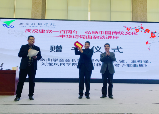 为弘扬中华民族传统文化,全面提高学生的文化素养,丰富学院校园文化,提升社团质量,西安技师学院于4月8日下午在文体活动中心举办“庆祝建党一百周年,弘扬中国传统文化——中华诗词曲杂谈讲座”。