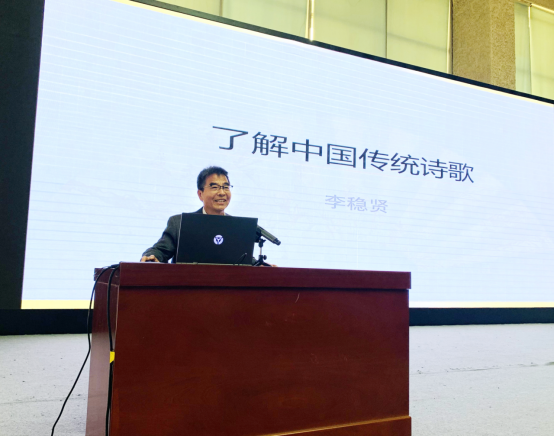 第二环节,李稳贤先生和徐耿华先生分别为参会师生进行了讲座。李稳贤先生为大家讲授了《了解中华传统诗歌》,他主要围绕什么是诗歌、认识诗歌两方面进行讲授。李稳贤先生用优美、生动的语言介绍了唐诗、宋词、元曲的特点,鼓励师生在今后的生活中进行文学创作;徐耿华先生为大家讲授的主题是《中国传统诗歌之美》,他主要从诗之美、词之美、曲之美三个方面,从中国经典诗词中举例,让现场师生体会到传统诗歌修辞的雅俗之美,同时他也鼓励号召诗歌爱好者从生活中悉心体会,开启文学创作之旅。