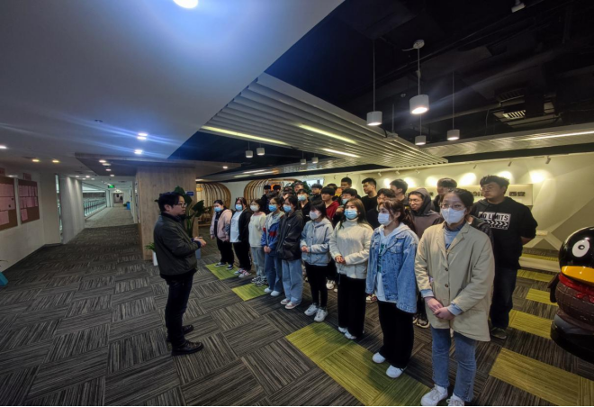 近日,西安技师学院现代服务系党支部书记、系主任王楠和教研室主任宋国亮前往西安爱克斯未来文化科技有限公司调研22G广告班全体学生在企业岗位认识实习情况。