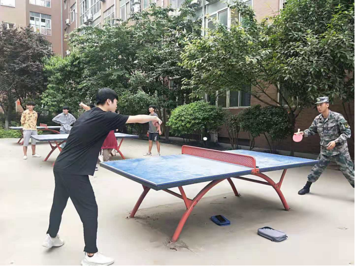 以吉翔同学与教官为首的一群乒乓球热血少年,在宿舍区展开了激烈“厮杀”,每一个击球,每一个扣球,都散发着青春的活力。