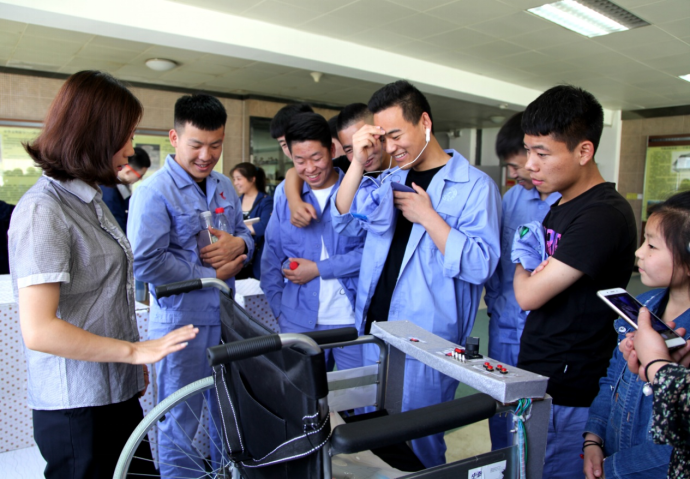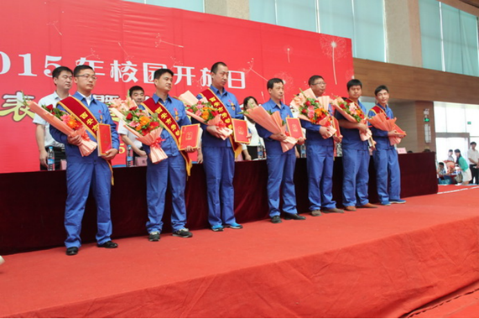 2015年,西电集团有8位技能工人被评为“西安市劳动模范”,学院邀请8位劳模参加校园开放周活动并颁发聘书,希望全体师生能以他们为榜样,人人学技能,人人爱技能。