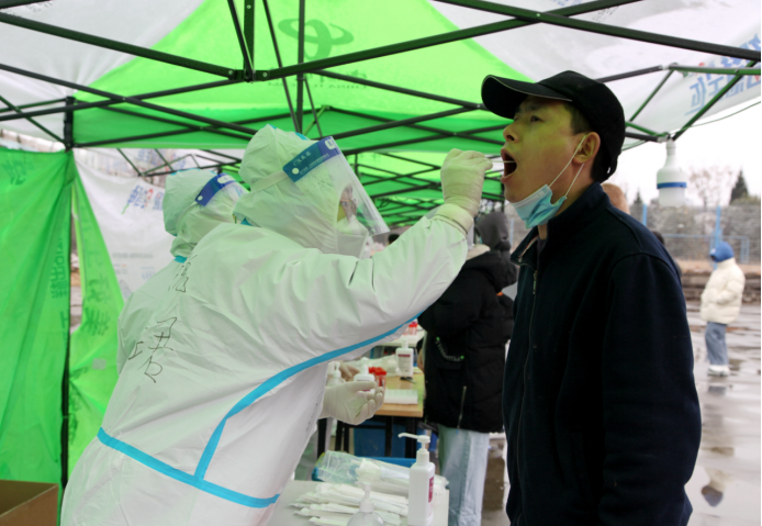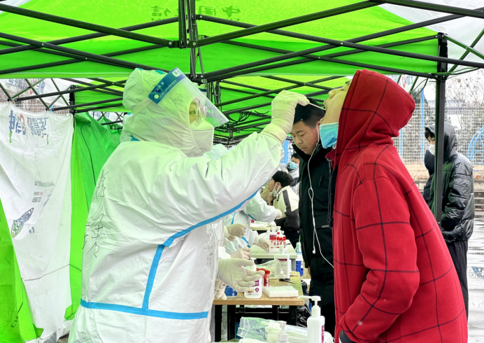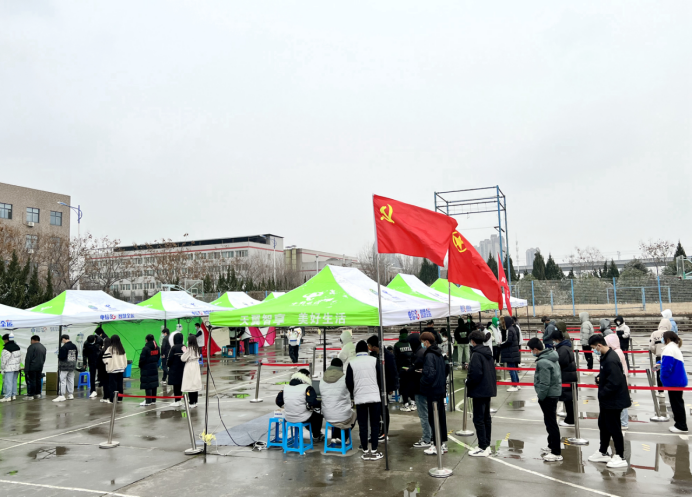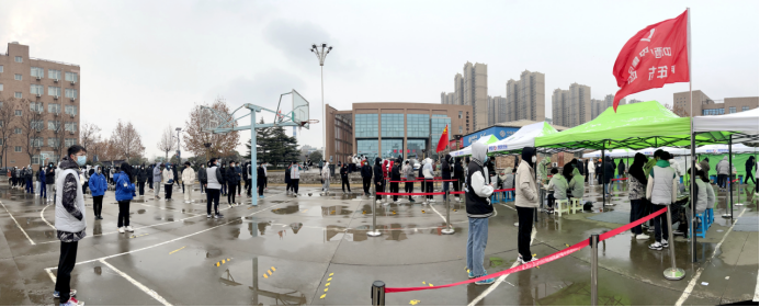 12月25日,虽然天空飘着雪花,但在沣东人社民政局统一协调下,西安技师学院第四轮核酸检测工作“风雨无阻”的开始了。