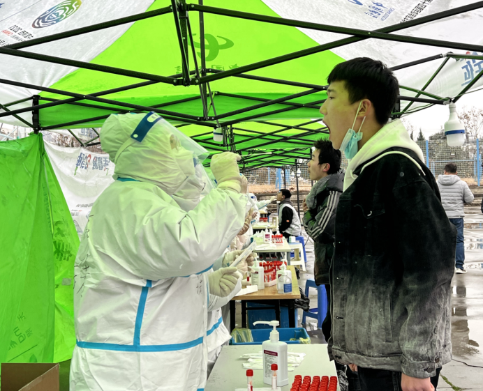 截止晚上六点半,7名医护人员以及100余名学生志愿者仍坚守在岗位,为剩余的1500余名师生进行核酸检测,此次将完成全校4600余名师生及第三方工作人员的核酸检测。