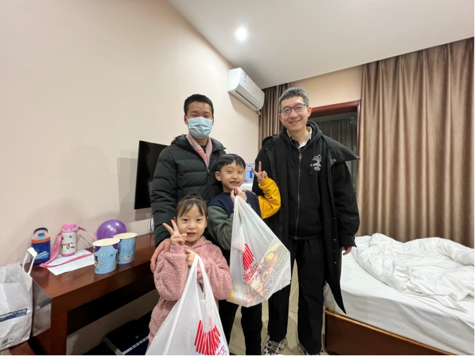 现代服务系的宋国亮老师,他的妻子康老师也是学院的教职工,12月22日封城的前一晚,在接到学校要求老师住校的通知后,两口子义无反顾地带着一双儿女返回学校,奔