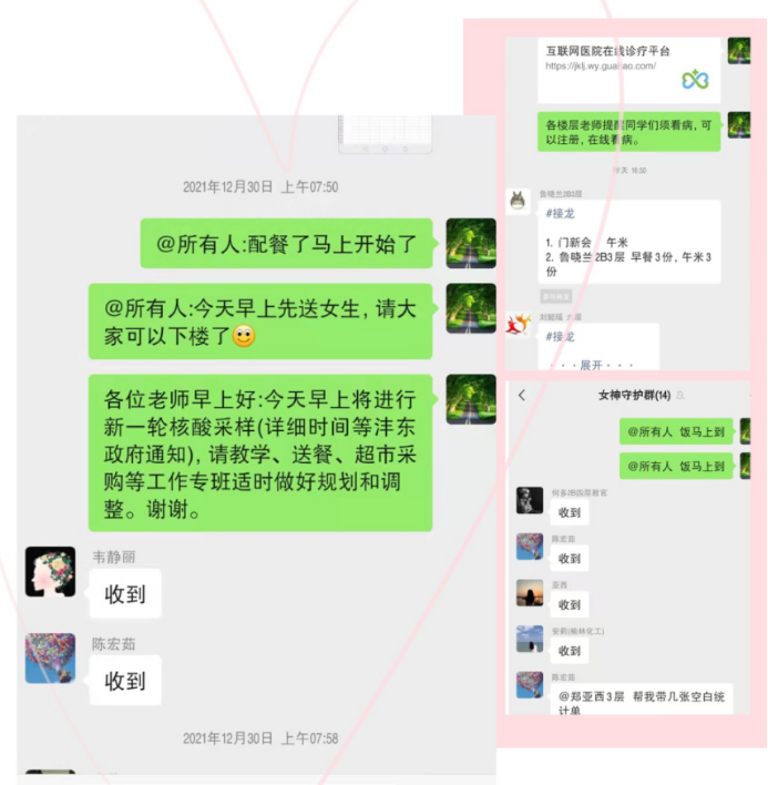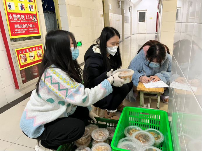 配送餐食、统计人数、监督上课、核酸检测、心理疏导......虽然,学生及楼宇管理专班的老师们每天就干着这些普普通通的小事,但他们一坚持就是一天、两天......一个礼拜,甚至更久。