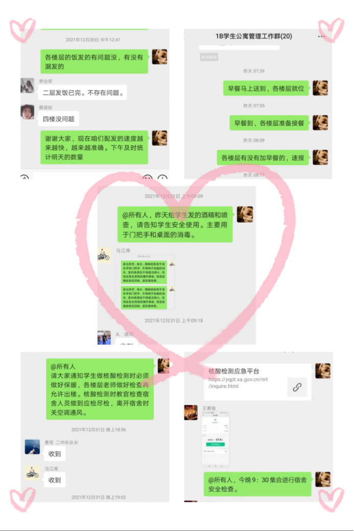 像张璇、宋国亮、单丽娟这样的老师,我们还有很多,他们都是普通人,却用最普通的行为践行着不平凡的使命与责任,“舍小家,为大家”,就像他们的工作群名一样,他们是西安技师学院4000余名师生的“守护者”,他们是西安技师学院“抗疫战队”中的一员,正是因为有了他们的保驾护航,我们的学生才能安心在宿舍学习、生活。