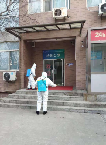 为了确保消杀工作实现全员、全物资、全区域覆盖和精准到位,专班负责人贾靖和同事们开动脑筋、群策群力,结合学院防疫实际,不断总结和改进,最终探索出校园三级消杀管理机制。包括对学生公寓楼道、学生宿舍、教职工宿舍、生活区楼宇通道、餐厅、办公楼公共区域的日常消杀;对生活垃圾收纳存放区、特殊人员隔离区、校园防护隔离带的重点区域消杀;对所有外购物资进入校园前的即时全面消杀;还有对整个校园的定期全覆盖消杀。同时,他们还给每一个学生宿舍都配备了专用喷壶和专用酒精,并且用完即领,保证学生宿舍的每日随时消杀。