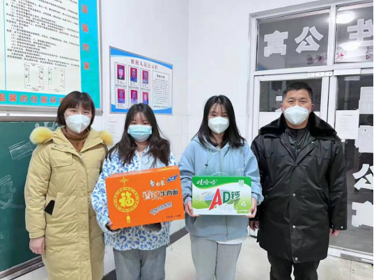 经过线上评选,共评选出一等奖2个,二等奖3个,三等奖5个,纪念奖9个。1月7日晚间,学生管理服务中心主任崔嵬带领部门工作人员赴宿舍向获奖学生发放了以食品为主的奖品予以鼓励。