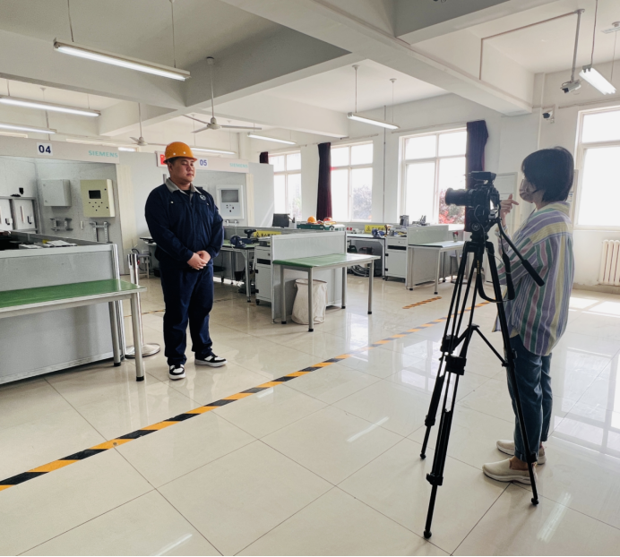 4月27日,新华社陕西分社记者前往学院进行采访拍摄。在学院副院长徐晓英的陪同下,采访组先后拍摄了学院高压电器培训中心、世界技能大赛工业控制项目实训基地、智能制造培训中心、智能物业培训中心、数控加工实训车间等实训场地的教学场景,现场采访了教师和学生代表。电气技术系留校教师耿佳斌及现代服务系学生代表分别从个人求学过程、成长经历等方面接受了记者采访,并现场向记者进行了技能水平展示。