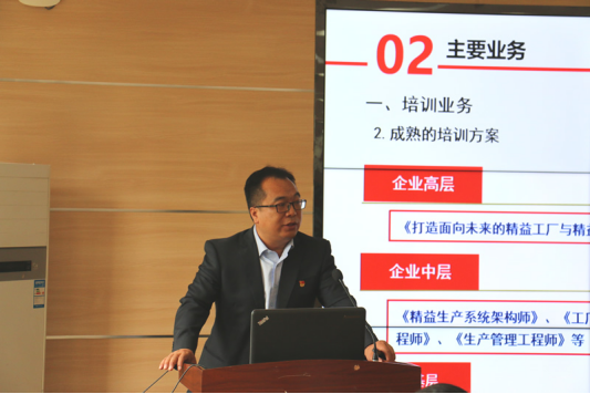 西电爱波瑞副总经理尹涛从西电爱波瑞企业基本情况、主要业务和服务模式及客户三个方面进行了介绍,精益资深教师惠晓妮从西电集团公司精益推进的历程和取得成效方面进行了详细的介绍。