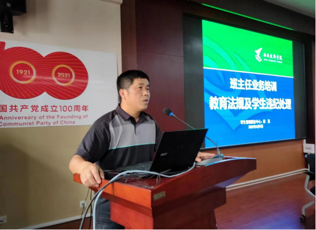 本次培训由两部分内容组成,第一部分培训由学管中心主任崔嵬主讲。崔主任以“教育法规及学生违纪制度、应急处置流程”为主题,重点对我院学生基本情况、教育法规、学生奖惩管理办法、校园各类应急处置流程进行了详细解读。他强调学生管理工作是学院的中心工作,班主任老师、副班主任是学生管理队伍的重要组成部分,是学生管理工作的骨干力量,副班主任要协助班主任一起做好班级学生管理,共同促进学生发展。