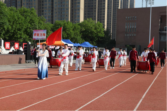 入场式开始后,国旗护卫队及会徽队、各系青年学生代表队、裁判员代表队方阵迈着整齐的步伐,喊着嘹亮的口号以饱满的精神状态行依次走过观礼台。一方阵,一主题,师生们用特色鲜明的方阵表演展示了全体师生爱国爱党爱校的真挚情感和昂扬向上的精神风貌。