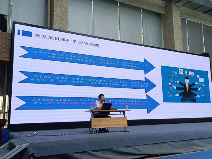 学生管理服务中心主任崔嵬对全体班主任提出三点要求。一是持续加强理论学习,提升政治素养,用高尚的人格感染学生,用真理的力量感召学生。二是提升育人艺术,要不断学习新知识、掌握新技能,关注“特殊学生”群体,建立动态台账,精准施策、暖心帮扶。三是必须时刻绷紧安全之弦,精准掌握学生动态,临近期末,做好各项学生安全工作。
