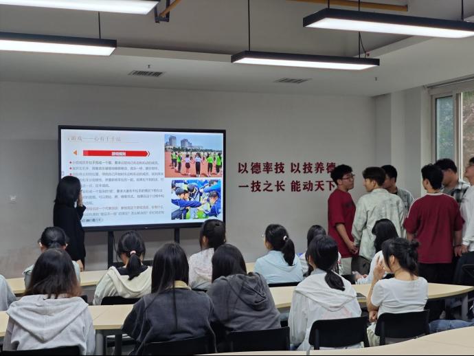 活动伊始,思政教研室的高铭老师以“九三阅兵”为切入点,通过视频、图片和历史故事,生动讲述中华民族十四年抗战的艰苦历程。她从“九三阅兵中的历史密码”展开,详细解读了“九一八”事变、七七事变等重要历史事件,回顾杨靖宇将军等抗日英雄的事迹,深刻阐释以爱国情怀、民族气节、英雄气概和必胜信念为核心的伟大抗战精神。