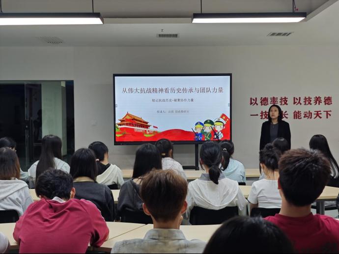 为纪念中国人民抗日战争暨世界反法西斯战争胜利80周年,在“九一八”事变纪念日之际,学院思政与公共课教学部开展“从伟大抗战精神看历史传承与团队力量”主题宣讲活动。此次活动旨在进一步弘扬伟大抗战精神,凝聚青春力量。思政与公共课教学部师生代表、思享社全体成员参加此次活动。