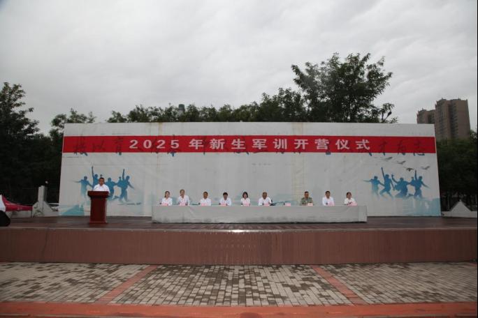 学院领导班子成员、院长助理、各系部和学管中心负责人以及军训团负责人、全体教官、学管、班主任和2025级新生参加开营仪式。仪式由副院长黄磊主持。