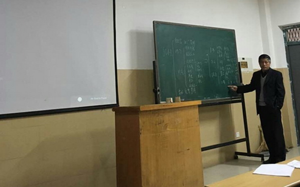 白西平老师在讲“应用文的种类”。白老师教法自然、知识熟练,给我们娓娓道来应用文写作的种类和写作要领,原本混淆的写作方法在白老师的讲解下立即清晰起来。