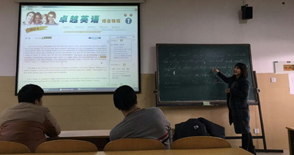 陈宏茹老师在讲“非谓语动词的用法和翻译”。长句翻译一直是学生们头疼的问题,陈老师用她扎实、娴熟的专业功底讲解了长句翻译技巧,使复杂的句型分析一目了然。