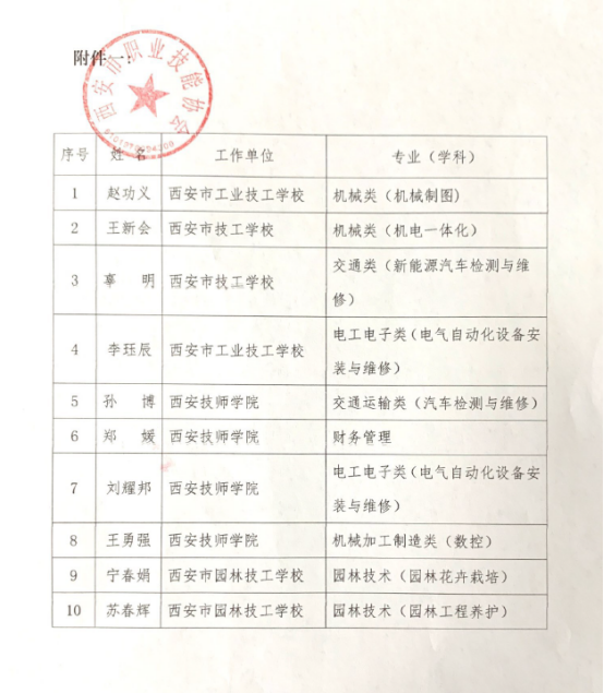 西安技师学院4名教师被评为市技工院校专业(学科)带头人
