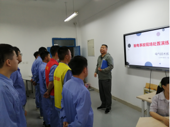 演练开始,电气技术系主任徐晓英首先强调了本次安全演练活动的目的及意义,指出安全无小事,要牢固树立安全意识;同时对此次演练提出具体要求,希望演练人员认真对待、实战演练、认真学习总结、提升安全事故应急处置能力,