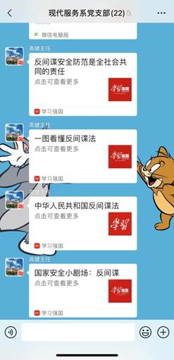 学院各基层党支部通过线上会议、学习交流群等形式组织全体党员认真学习反间谍法相关知识;宣传部门通过微信公众号、校园网、电子屏等平台向全体师生推送国家安全宣传公益信息;团委、学生管理部门、教学系也纷纷组织师生学习《国家安全法》、《反间谍法》等国家法律法规,收看反间谍法相关内容,发动学生利用多种形式畅谈学习心得、创作学习作品;学生社团组织学生干部进行学习讨论,深入剖析境外间谍组织的本质及特征,大家都表示今后要注意向周围的人进行宣传,争当国家安全知识的义务宣传员。
