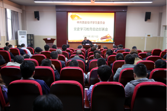 3月19日下午,西安技师学院党史学习教育启动部署会在C座302报告厅举行,会议贯彻落实习近平总书记在党史学习教育动员大会上的重要讲话精神,按照中国西电集团党委部署和要求,安排部署了学院党史学习教育工作。技师学院党委书记、院长范孝红作动员部署讲话,党委委员、副院长冯小平主持会议,学院领导班子成员及全体在岗党员参加了会议。