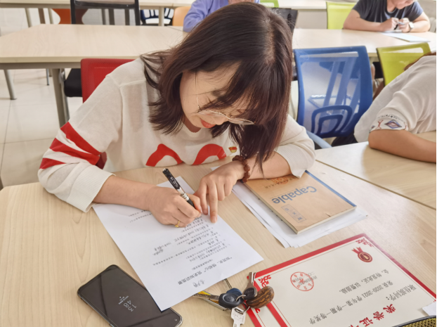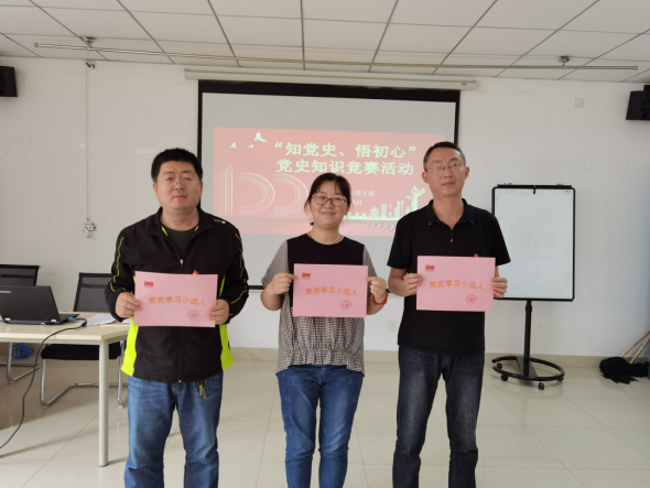 为了检验和巩固党员同志们学习党史、牢记党史的阶段性成果,全体党员进行了党史知识竞赛活动,活动以闭卷笔答的方式进行,全体党员认真答题,以这种方式向革命先烈致敬。竞赛最后,每位同志都交出了满意的答卷,其中单丽娟、赵鋆、何立成同志成绩优异,被支部授予“党史学习小达人”。徐晓英书记强调,所有党员要向以上三位同志学习,把党的历史牢记心里,党史学习没有止境。