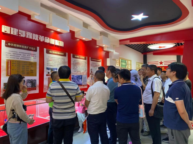 在纪念馆工作人员的引导下,全体人员认真参观了展示红色历史的三个展厅。每到一处,大家都仔细聆听讲解员对鄂豫陕革命根据地葛牌镇区苏维埃政府建立过程、红二十五军战斗历史的专业解说。参观过程中,透过玻璃橱柜观摩那些红二十五军战士曾经用过的武器,尤其是听到田银斗等红军先烈的战斗故事后,大家的思想深受洗礼。