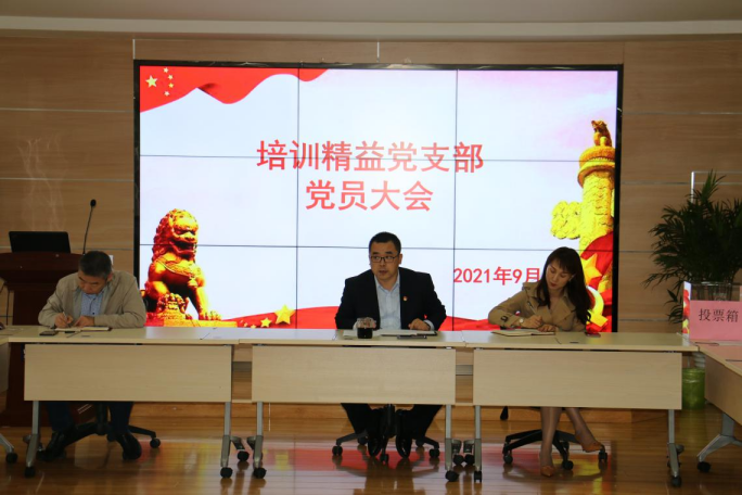 2021年9月27日下午,学院培训精益党支部在D411室召开党员大会,会议由支部书记黄磊同志主持。