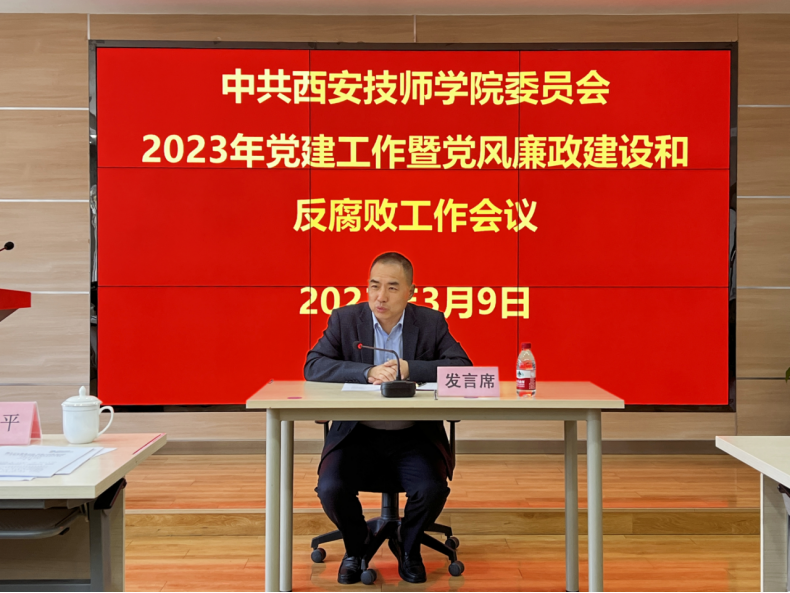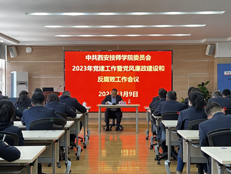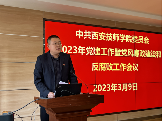 3月9日,西安技师学院党委召开2023年党建工作暨党风廉政建设和反腐败工作会议。会议以习近平新时代中国特色社会主义思想为指导,深入学习贯彻党的二十大精神,全面落实二十届中央纪委二次全会部署,以及中国西电集团党委2023年党建工作暨党风廉政建设和反腐败工作会议精神,认真总结学院2022年党建工作、党风廉政建设和反腐败工作,部署2023年重点工作任务。会议由西安技师学院党委委员、副院长张大宁主持。